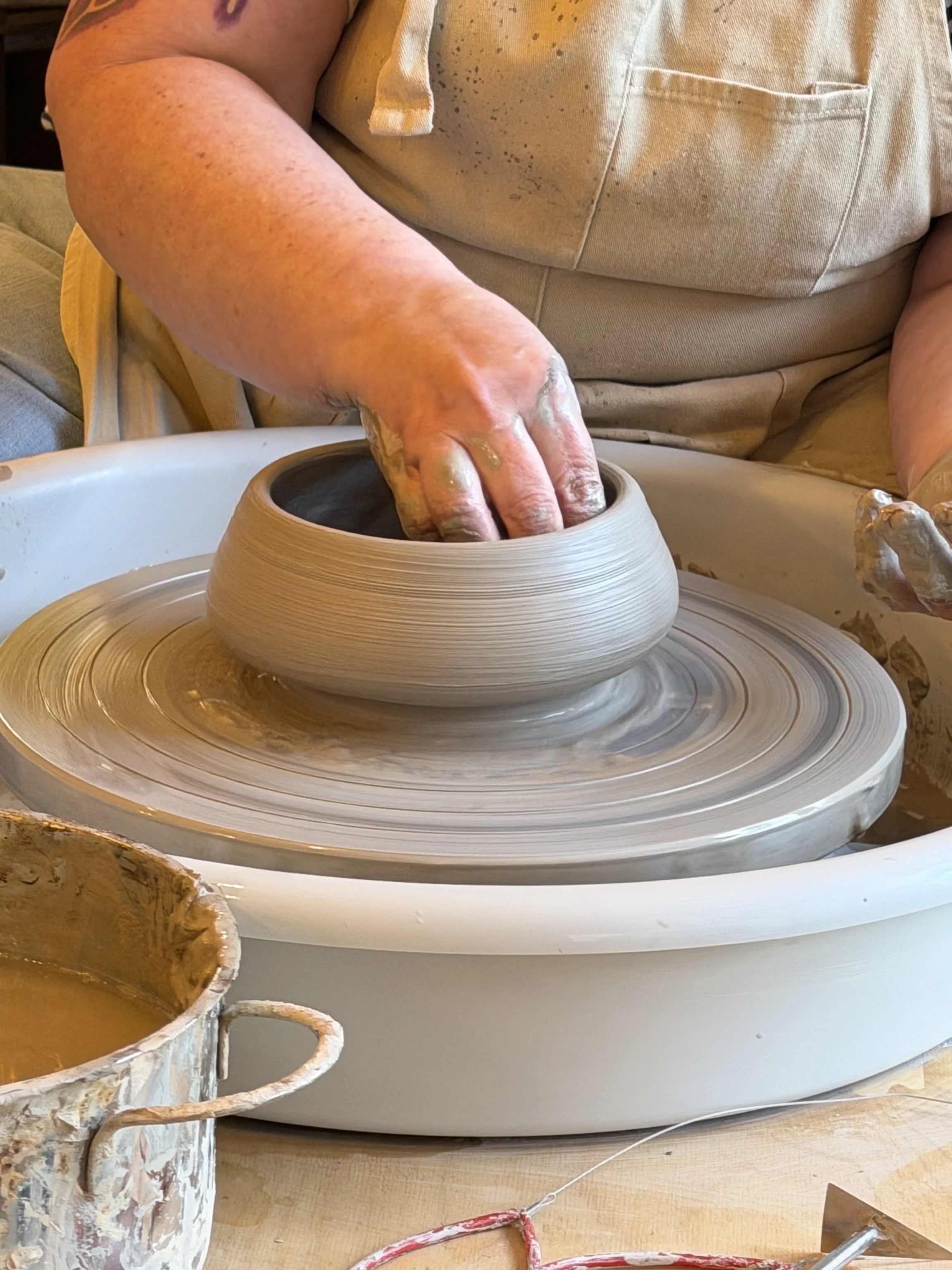 Nach einer Einweisung kannst Du beginnen praktisch zu arbeiten. Dabei wirst Du den Umgang mit dem Ton, den Werkzeugen und der Drehscheibe erlernen oder auffrischen. Ich steh Dir immer mit Erklärungen, Ratschlägen und handwerklicher Unterstützung zur Seite. Wie viele Werkstücke Du machen möchtest, bleibt Dir überlassen.